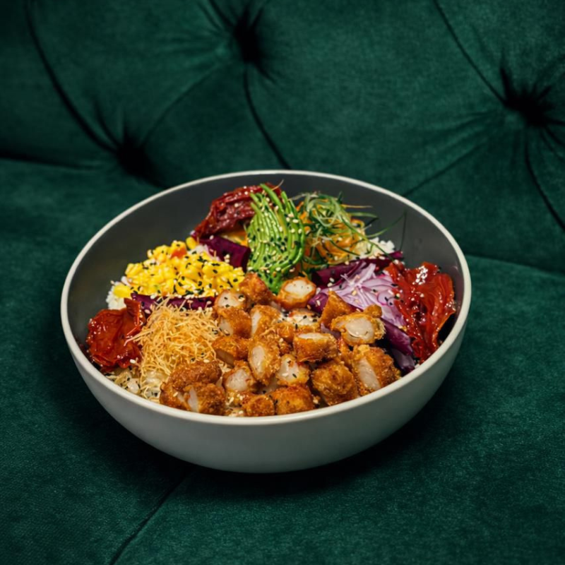 Shari – Ebi Furai – Palta – Cebolla Morada – Hilos de papas – Mango – Remolacha en pickle – Verdes – Tomate nikkei